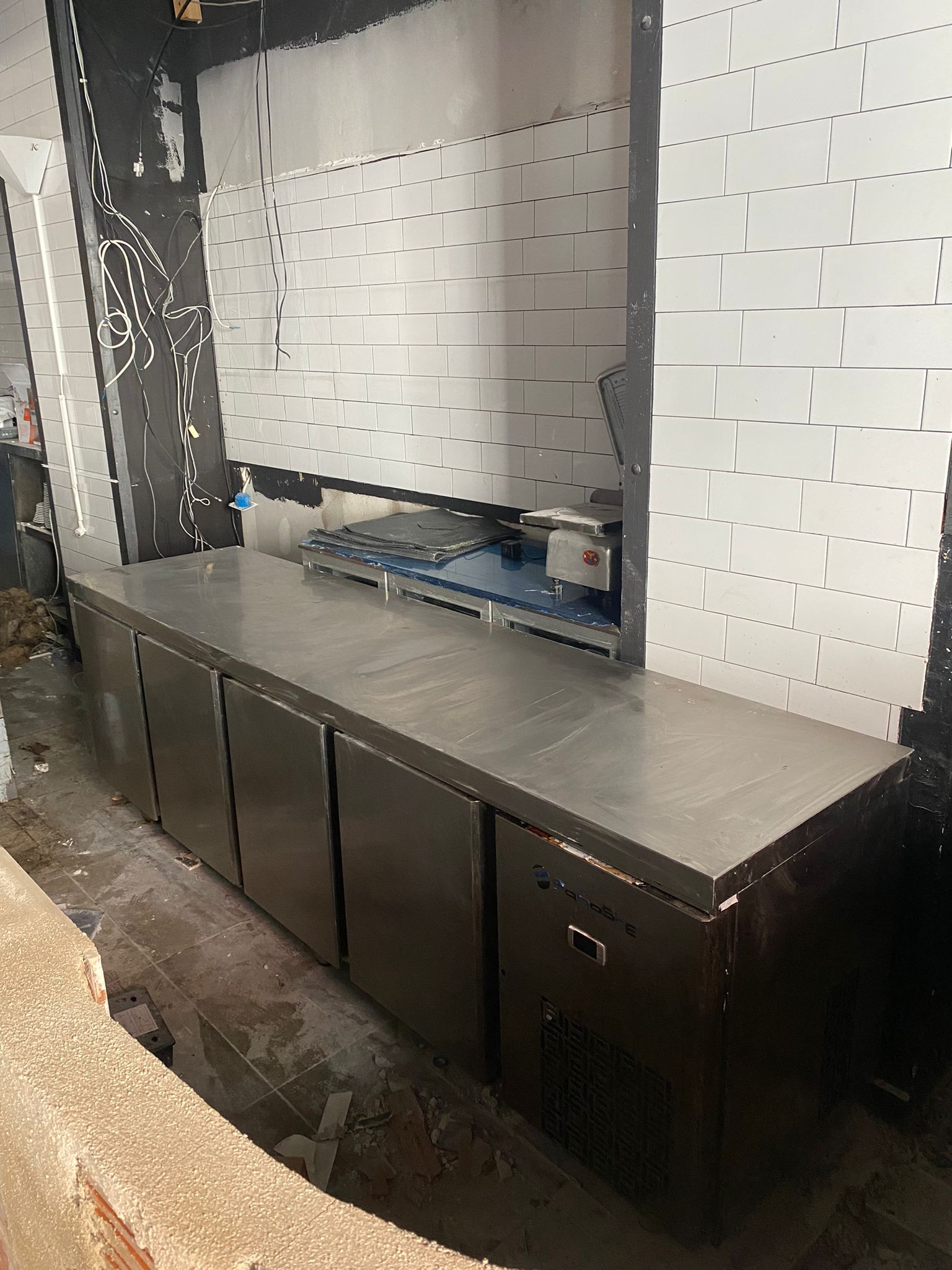 Bajo mostrador refrigerado de acero inoxidable 4 puertas, con superficie de trabajo. Para hostelería. Se puede pasar a ver, estamos en Ruzafa.