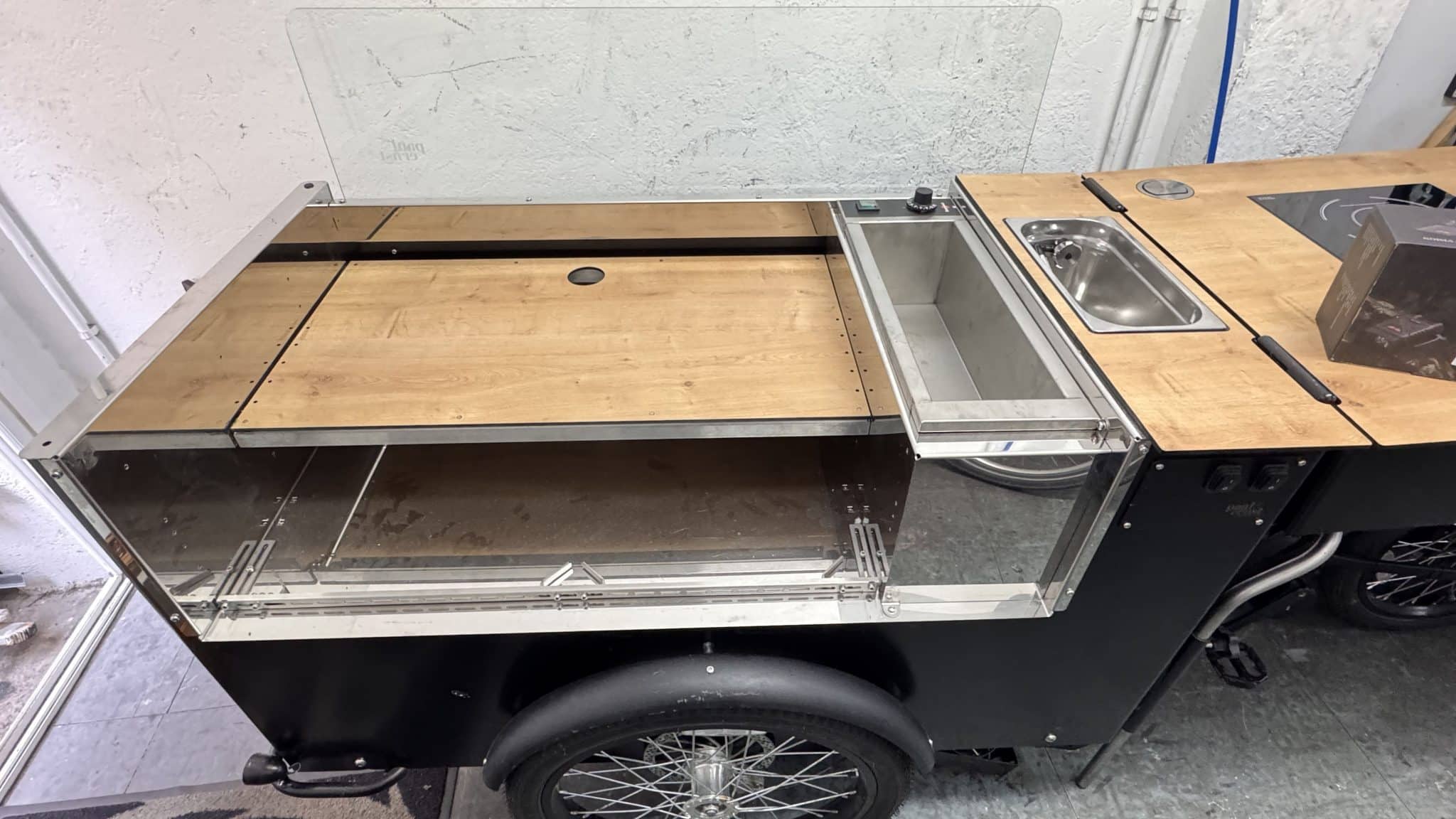 E-CARGO-BIKE -Bicicleta Street Food Paul&Ersnt PRO II M20 (roble claro, batería pequeña de 0,4 kW, tapas pro, enchufe UE) solo 60kms, uso de muestra para grabación