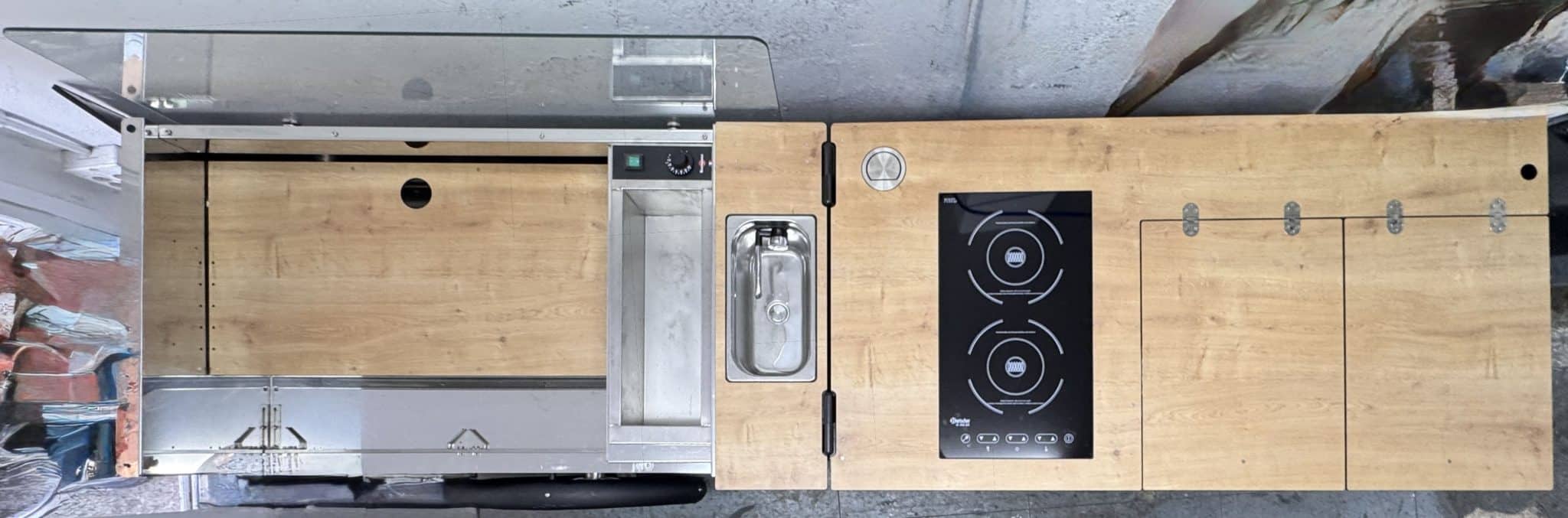 • Inserto de cocción de acero inoxidable (L1075 x P660 x H315 mm) para 2 aparatos de cocción, de gas o eléctricos, sin unidad de refrigeración.