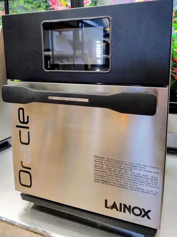 Horno combi Lainox de exposción, diseñado para usaren cualquier lugar, cocinar varios tipos de productos, recuperación de platosen cuestión de segundos gracias al High Speed Oven, puede ponerse en cualquierlugar sin necesidad de ningún tipo de instalación ni extracción, sistema de fácillimpieza.