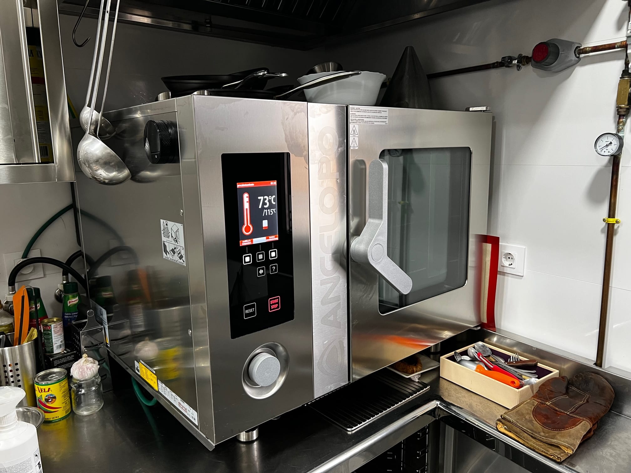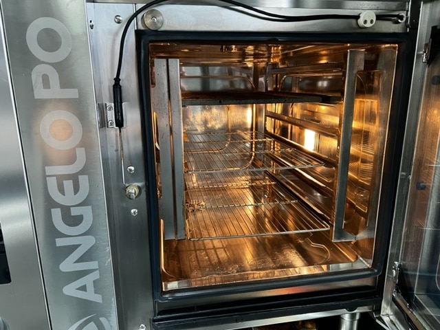 Horno mixto gas (se puede pasar a eléctrico cambiando una pieza) Capacidad para 6 bandejas GN 1/1. Horno mixto con cocción automática por pasteurización, ahumado, sous. vide, secado, preparar tortas y postres, freír, hervir, Browning, abrasador, cocinar en Delta T y Baja Temperatura. Control directo y patentado humedad en cocción. Doble generación de vapor. Libería programada con 150 programas de cocción automáticos y memorizados. Multi cocción contemporánea con programas de cocción compatibles Multi-temporizador (20 programas) y el uso de 2 sondas para el corazón (2 sondas de cocción: MULTIPOINT Y STANDARD)