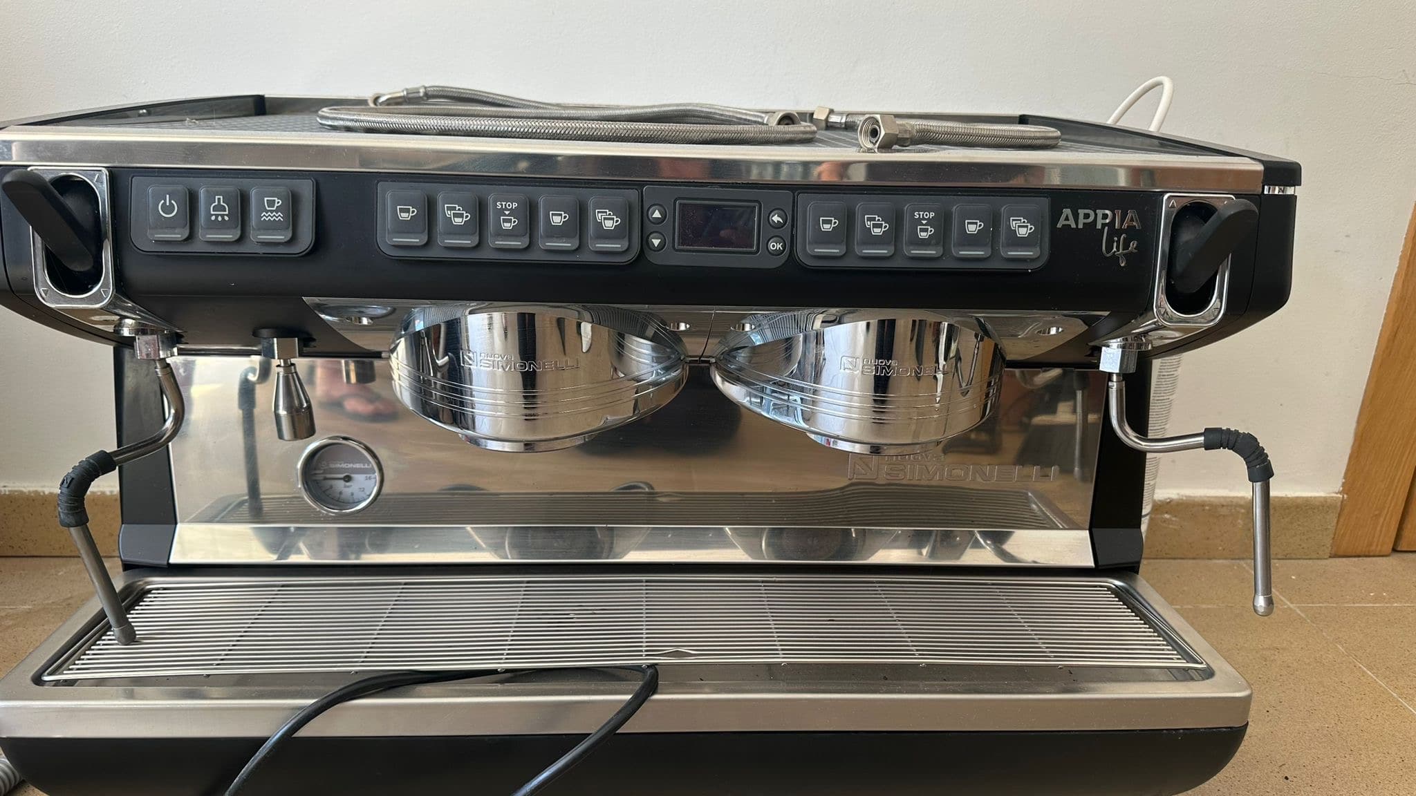 Maquina de cafe Nueva Simonelli Appia LIfe XT – 2GR con filtro Everpure Claris Ultra., color Negro y gris. Uso 6 meses, en venta por trapaso.