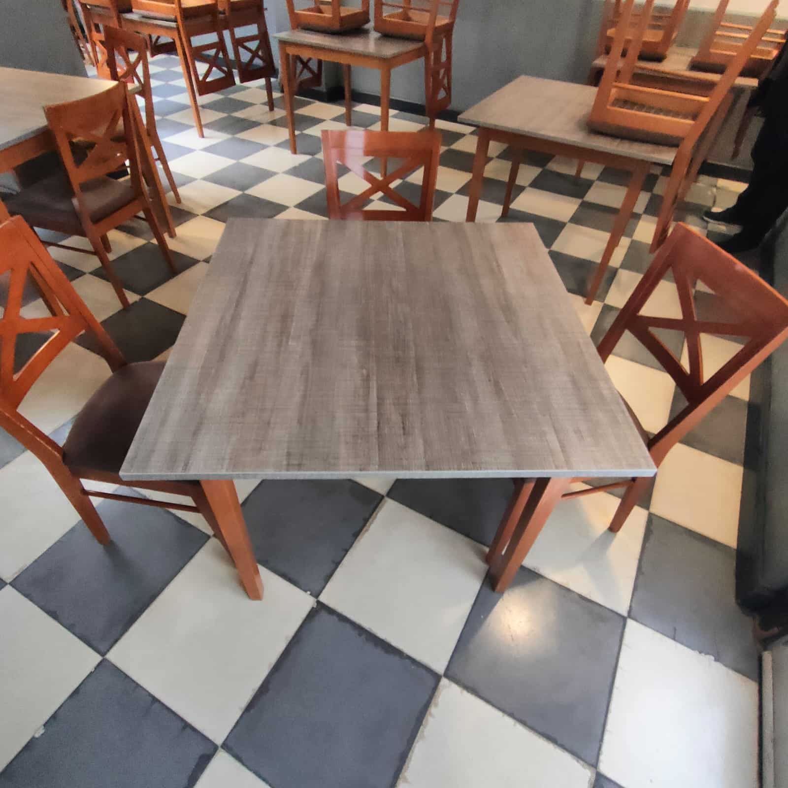 Se vende conjunto de mesas de restaurante. Diferentes medidas: 90×90,70×70,100×100 las cuadradas. 155 las redondas con apliques para hacerlas mas grandes; y 210×110 las rectangulares.